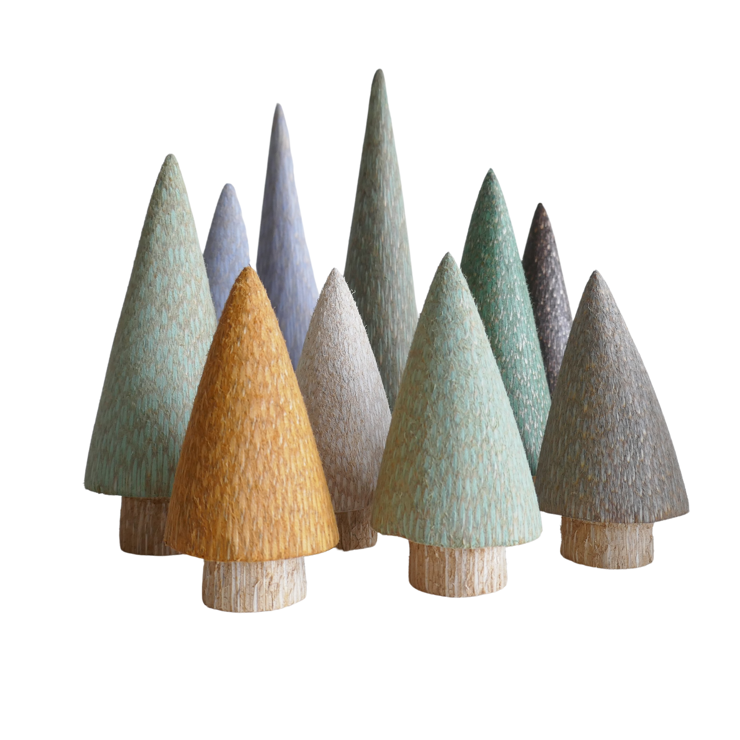 Schicke, ökologische handgeschnittene Dekobäume aus Palmenzweigen. Bemalt mit giftfreien Biofarben.