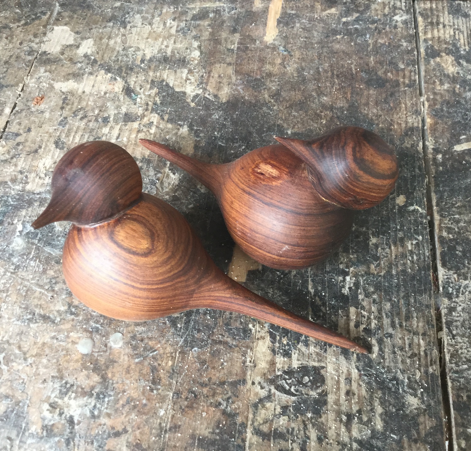 Handgedrechseltes Vogel gemacht aus alten Dhauboots, benutzt von Fischern in Tansania. Jedes Stück ist ein Unikat und zeigt unterschiedliche Farben und Holzoberflächen.