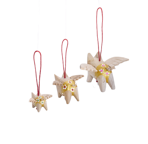 Produktinformationen "Holzschwein mit Flügel in gold"