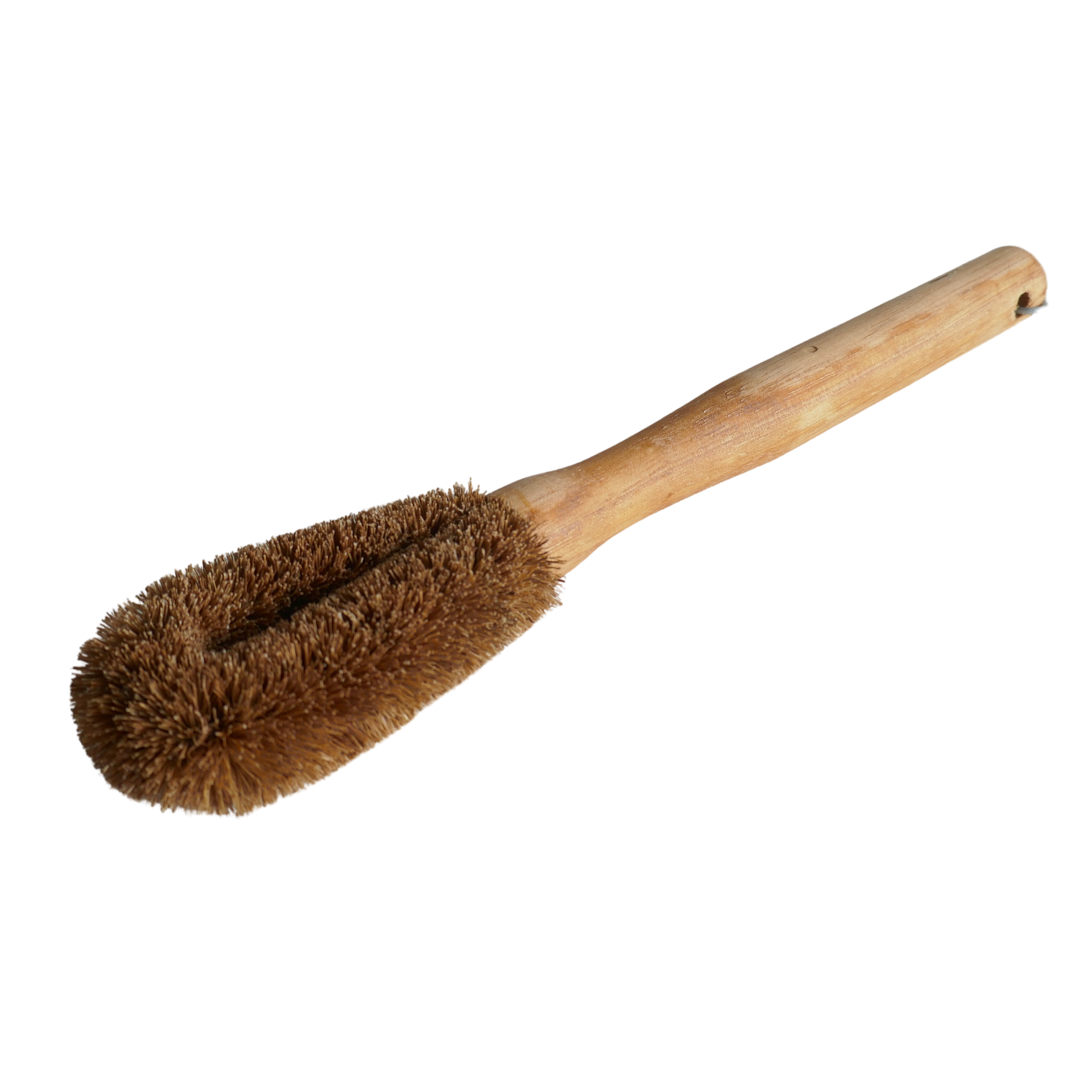 Material: Kokosfaser, Holzgriff aus FSC-zertifiziertem Gummibaumholz,lackiert mit Leinsamenöl, galvanisierter Eisendraht