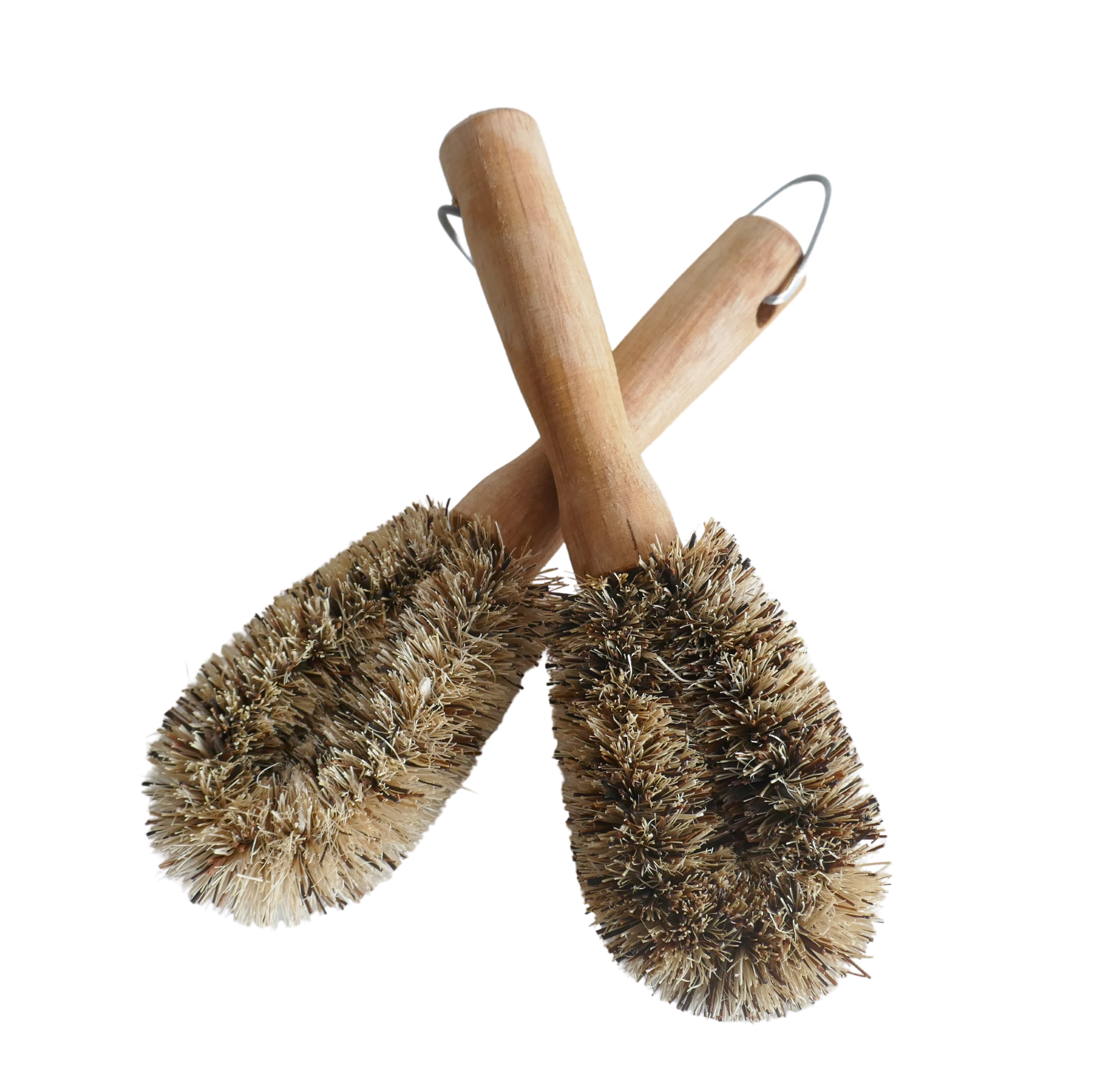 Material: gebleichter Kokosfaser und Palmyrapalmenfaser, Holzgriff aus FSC-zertifiziertem Gummibaumholz, lackiert mit Leinsamenöl, galvanisierter Eisendraht