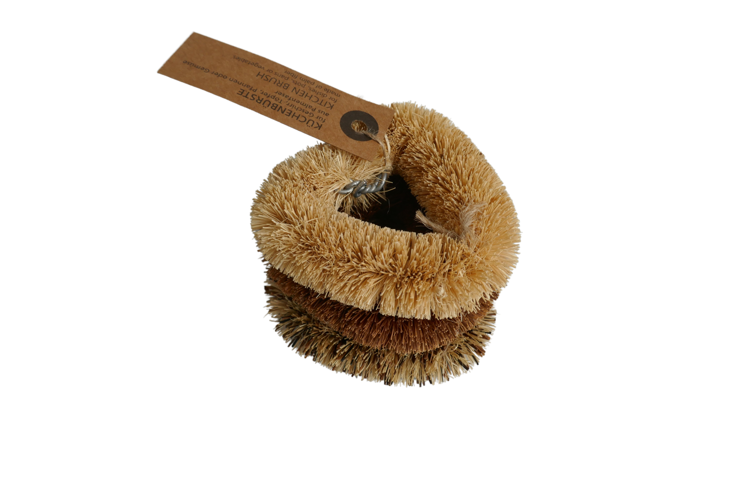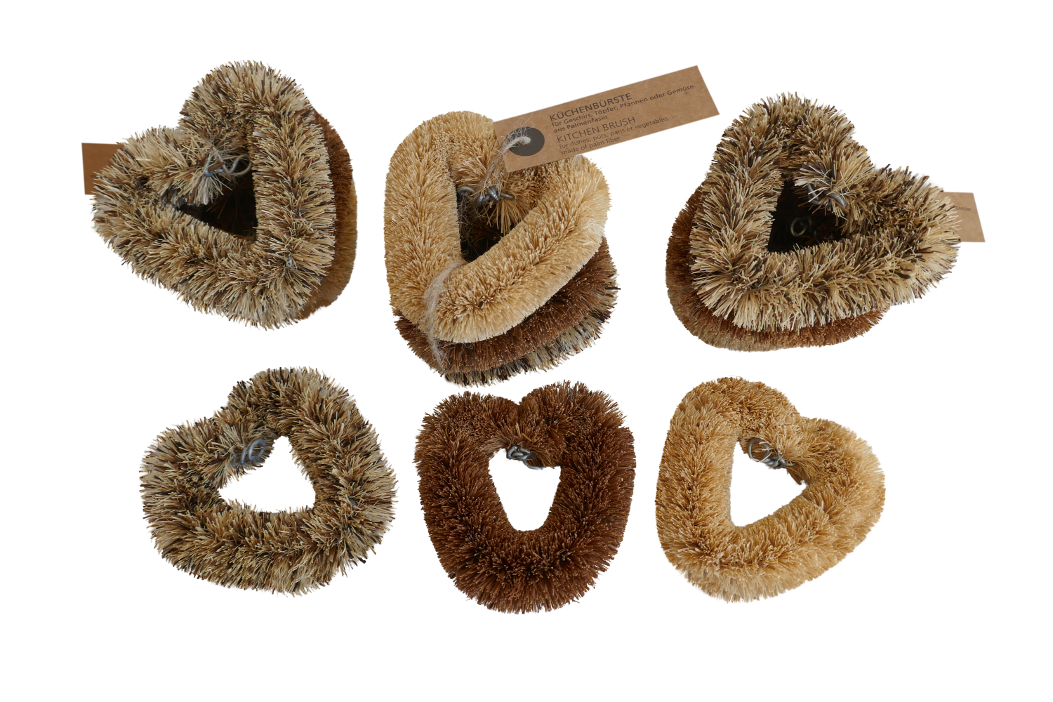Ihr ressourcenschonendes und dennoch äußerst funktionales Design zeichnet sich durch eine minimale Materialverwendung bei maximaler Effizienz aus. Diese Bürsten werden in Handarbeit aus nachwachsenden Rohstoffen wie Kokos- und Palmyrapalmenfasern hergestellt, was ihre Umweltfreundlichkeit unterstreicht. Dank ihrer handlichen Größe erweisen sich diese Bürsten als äußerst praktisch, selbst in kleinen Küchen oder Campingwagen. Kokosfaser hat antibakterielle Eigenschaften und schimmelt nicht.