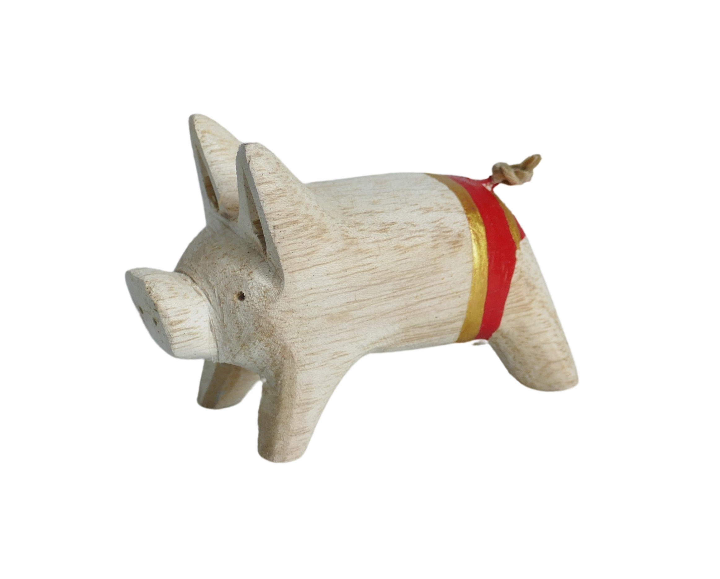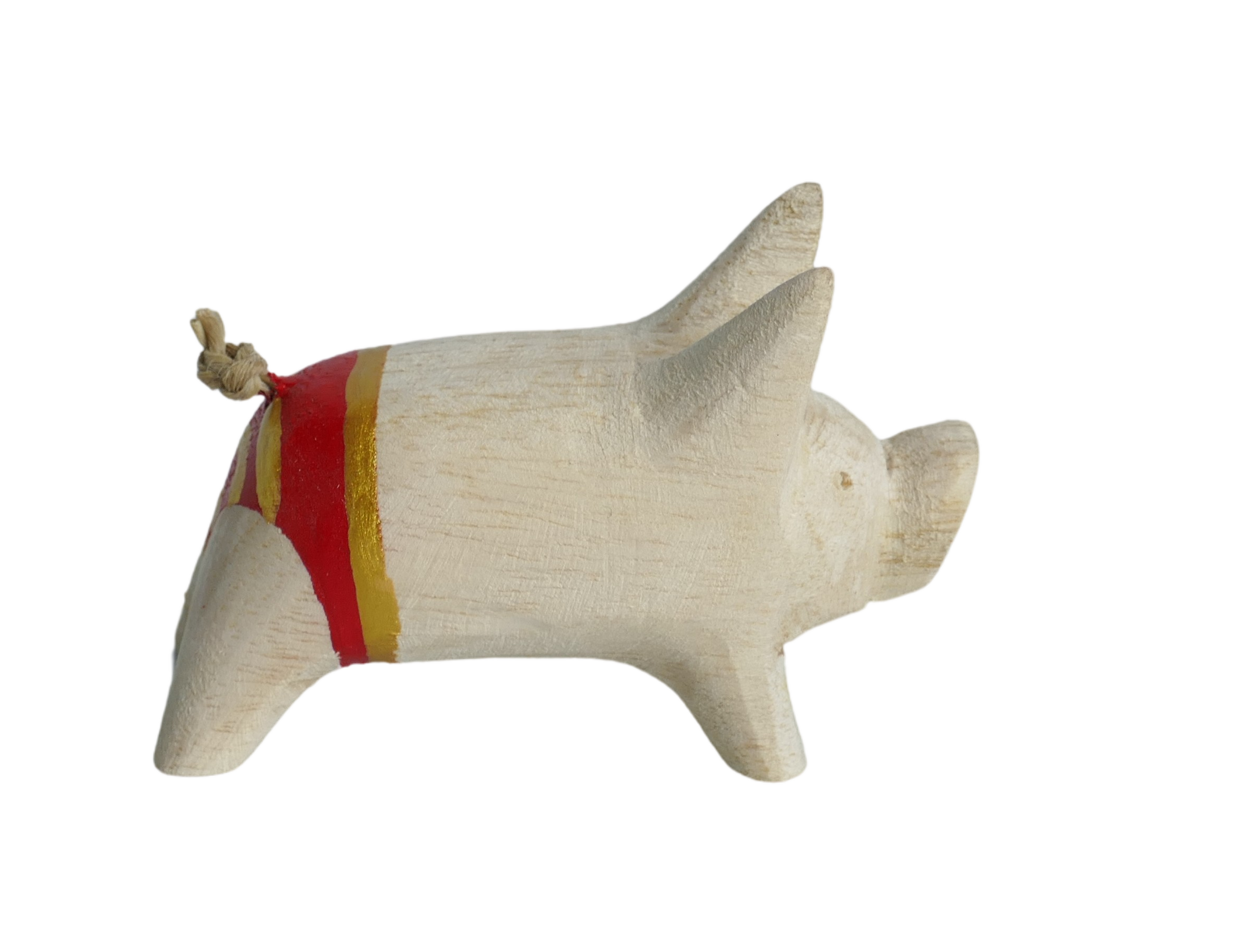 Produktinformationen "Holzschwein mit gold-rot gestreifter Hose"