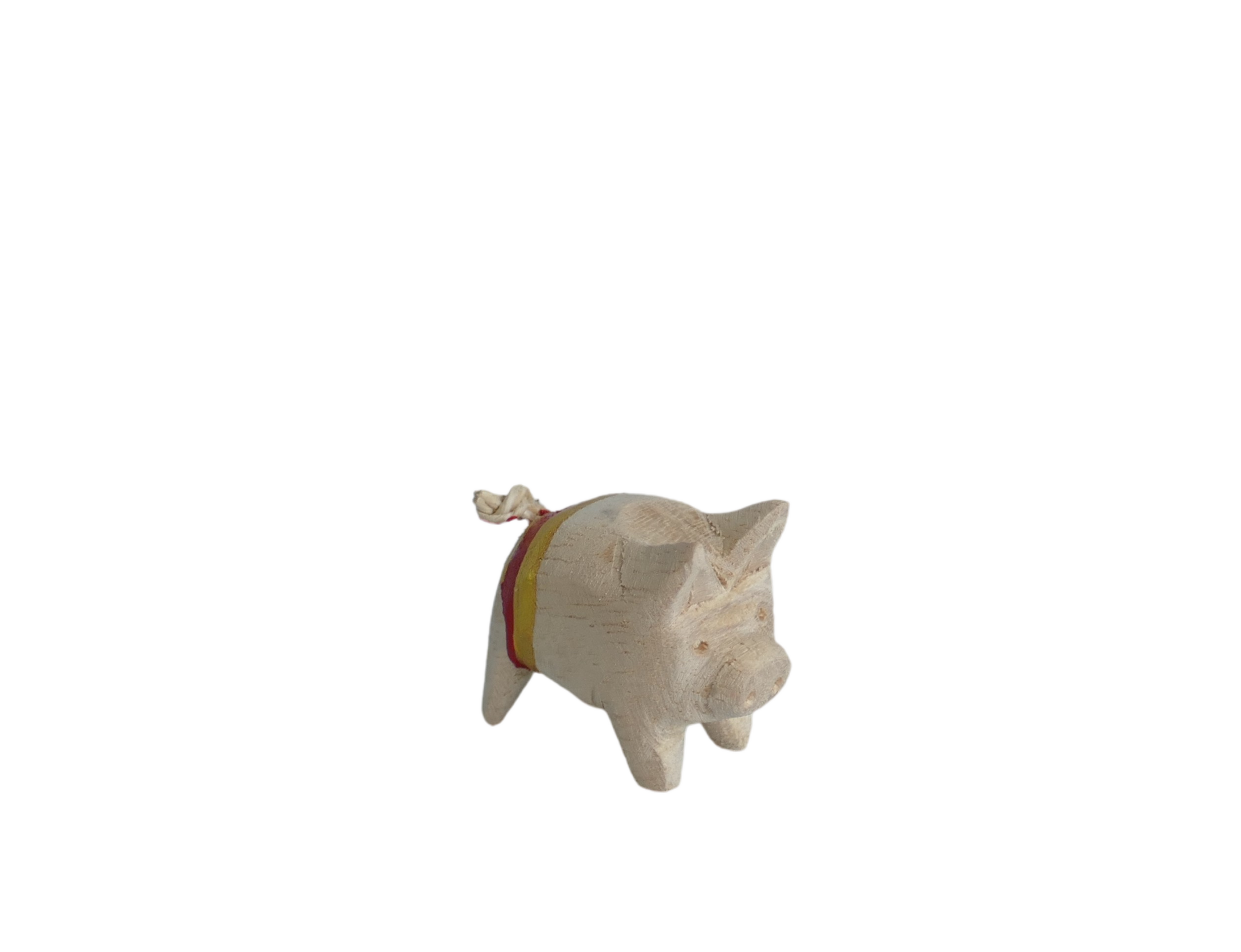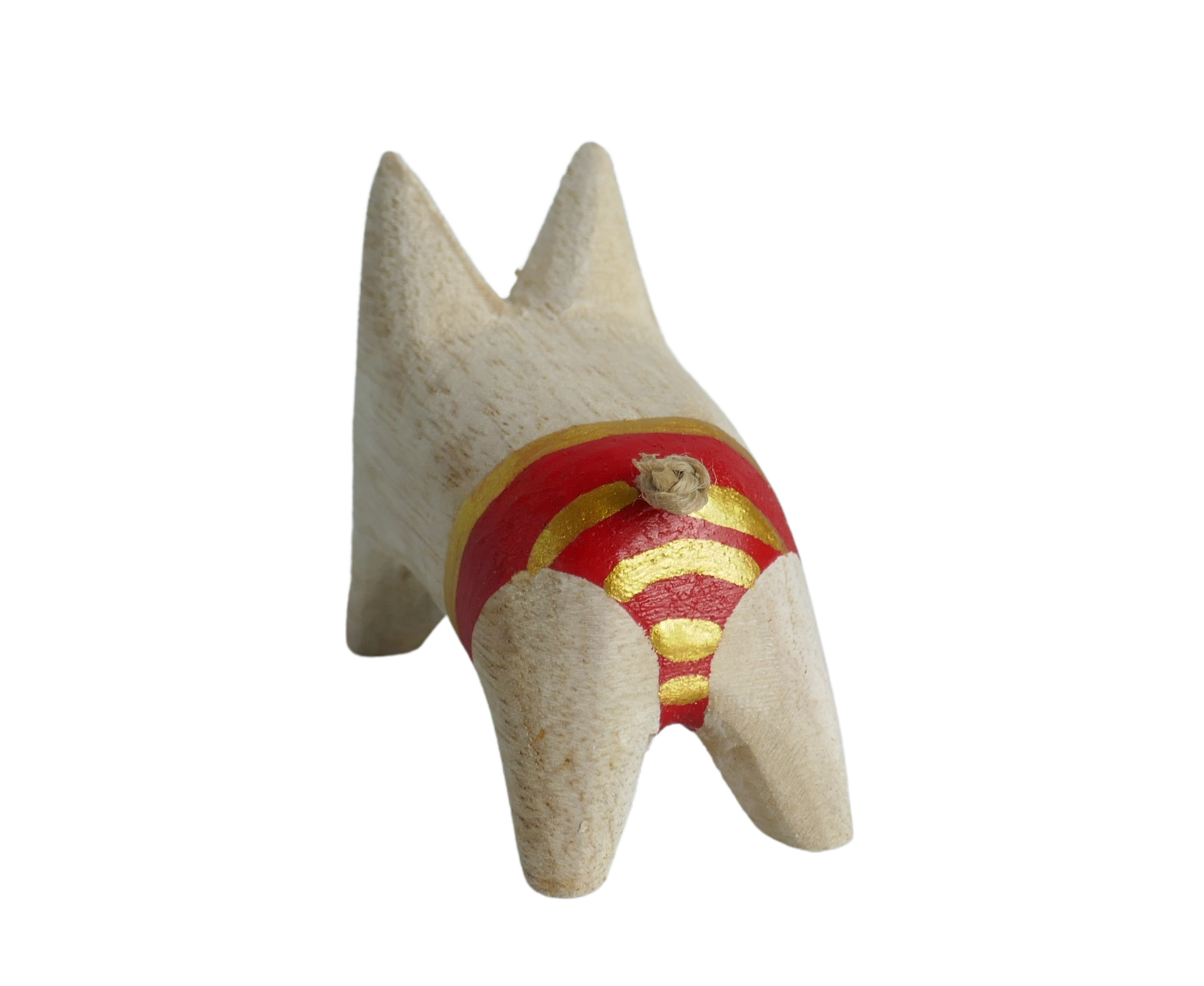 Holzschwein mit gold-rot gestreifter Hose